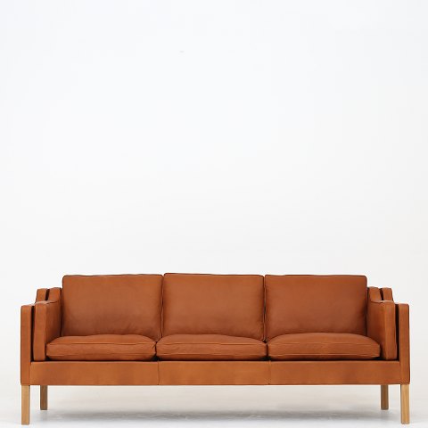 BM 2213 - Reupholstered 3-seater sofa in Savanne Cognac leather. KLASSIK offers upholstery of the sofa in fabric or leather of your choice.