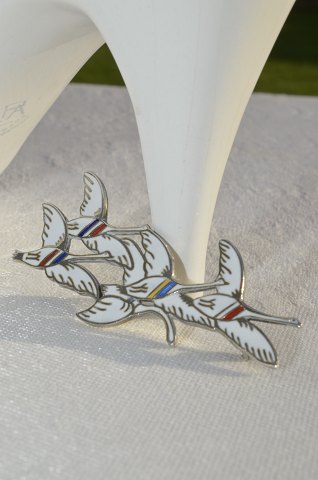 Brooch "The five swans from the North" of 925 sterling silver and white enamel by Erik Magnussen.