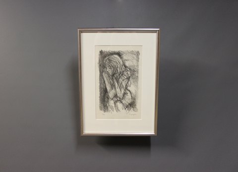 Litografisk tryk af dame med fugl signeret af Bjørn ...