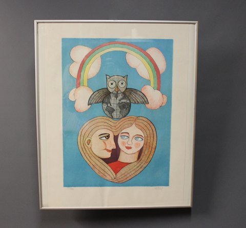 Litografi i klare stærke farver signeret 255/500 Heerup ...