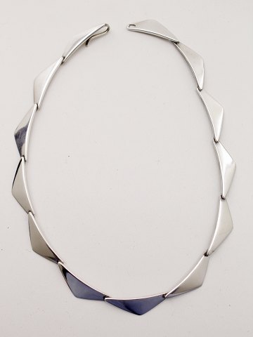 Bent Knudsen halskæde. Bent Knudsen: Leddelt halskæde med hajfinneformede led. Sterlingssølv med skruelås. #83. L: 39cm