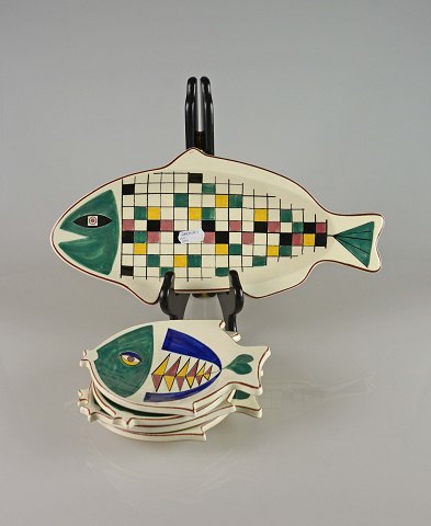 Skål D: 22.5 cm, fad D: 22 cm, kande H:16 cm.