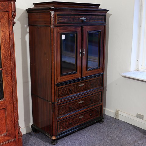 Spejl af mahogni og nøddetræ med forgyldte skæringer. ...