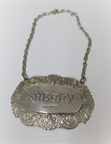 Vinskilt. Engelsk til sherry. Sterling (925). Produceret ...