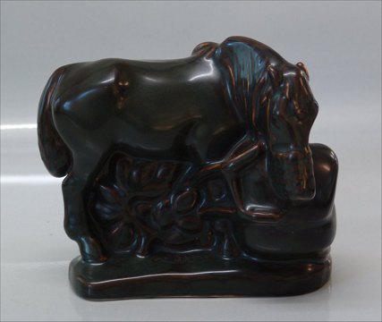 1-3106 Kgl. Sæl spiser fisk Knud Kyhn Celadon glasur ca 22 x 22 cm