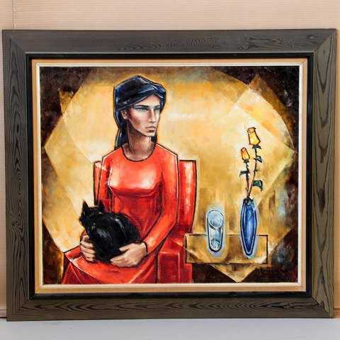 Oliemaleri med dyremotiv og med sort ramme uden ...