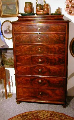 Vitrineskab i nøddetræ og mahogni fra ca. år 1890.