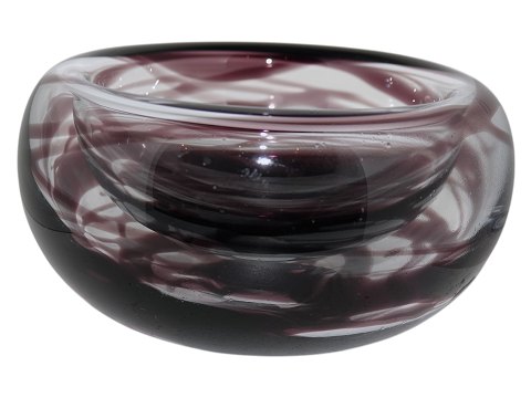 Holmegård kunstglas, oval bordskål i mørkeblåt glas
