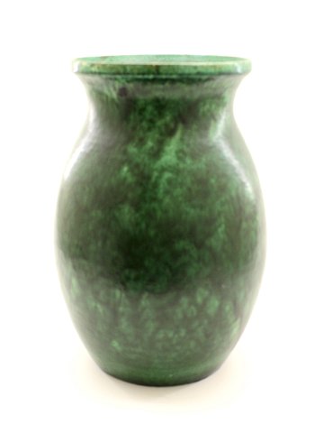 Arne Bang; Vase af stentøj, riflet korpus i grøn #3