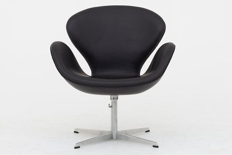 AJ 3320 - Nybetrukket "Svanen" i cremefarvet Paris Cream-læder med stel af stål. KLASSIK tilbyder polstring af Svanen med stof eller læder efter eget valg