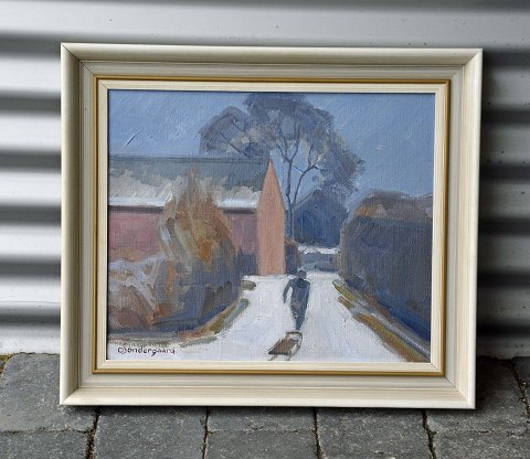 "Havneparti" Olie på lærred.
