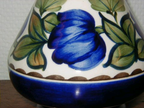 : Aluminia Vase with blue flowers and a curved edge, 223/311, height 15 cm. Perfect condition.