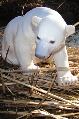 Description: B&G figurine porcelain. Polar bear no. 1857. Length 36 cm. Height 22 cm. 14 1/8 inches. 8 5/8 inches. Artist : Knud Kyhn.