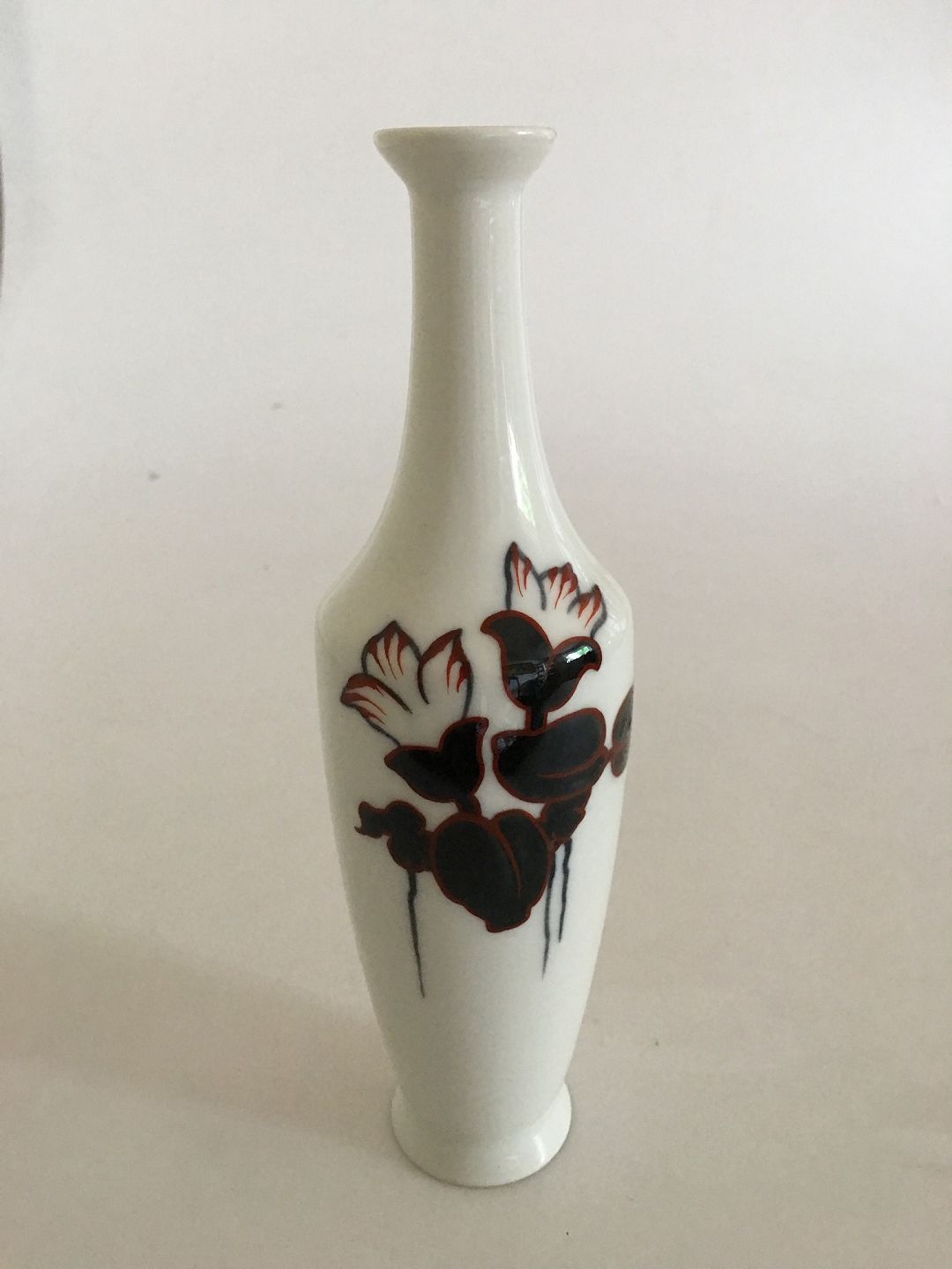 Beskrivelse: Bing and Grondahl Art Nouveau unika vase af Theodor Larsen. Måler 22cm og i perfekt stand. Sjældent set form på vasen og denne decorations teknik er meget sjælden.