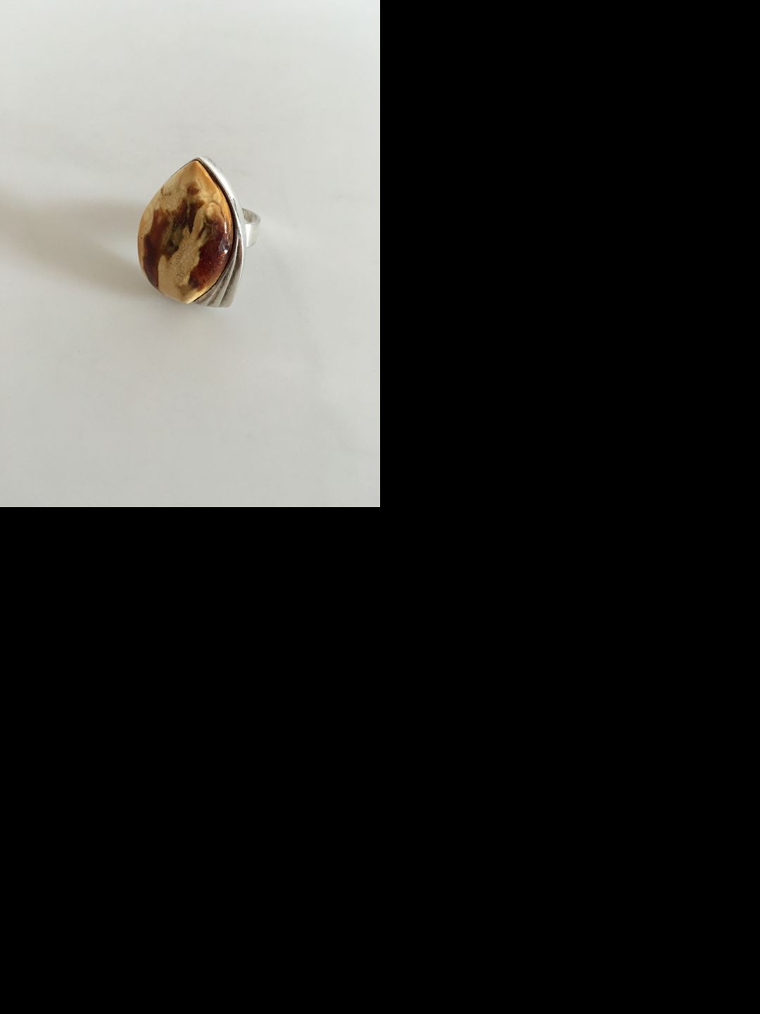 Beskrivelse: N.E. From Sterling Sølv ring med Rav. Fremstår i fin stand og har justerbar ringstørrelse. Måler 3,5cm. Størrelse 60. Kan justeres op og ned. Vejer 16,3g
