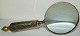Beskrivelse: Stort forstørrelsesglas med greb i sølv plet. I perfekt stand. Fremstillet ca. 1920. Mål: 24 cm langt glasset er 10 cm i diameter