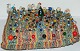 Beskrivelse: Gammel pude med masser af nipsenåle på begge sider. Flest små glaskugler. Flere hoveder fra Disney. Puden måler 12½ cm x 16½ cm