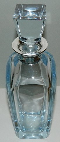 Beskrivelse: Moderne glaskaraffel fra Strømbergshyttan. Fremstillet ca. 1955. Monteret med sølvkrave. Stemplet HRH 830S DENMARK. Karaflen indridset på bunden. I perfekt stand. Ingen skader eller reparationer. 28½ cm høj incl. prop.