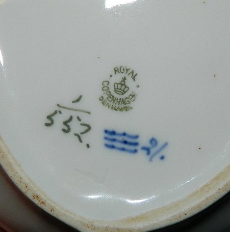 Beskrivelse: Ovalt fad i halvblonde musselmalet porcelæn fra Royal Copenhagen. 1. sortering. Modelnr. 1/552. Mål: 3½ cm høj, 22 cm lang og 13 cm dyb.