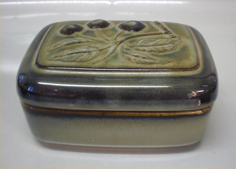 B&G 7000 ? Green Glazed Butter box with lid with cherries in relief 7 x 15 cm OUT