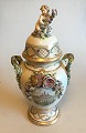 Beskrivelse: Royal Copenhagen Pragt Vase med Putti figur. Måler 50 cm og er i god stand. Har lidt afslag på blomster. Reparation ved hank. Motiv er Rosenborg.