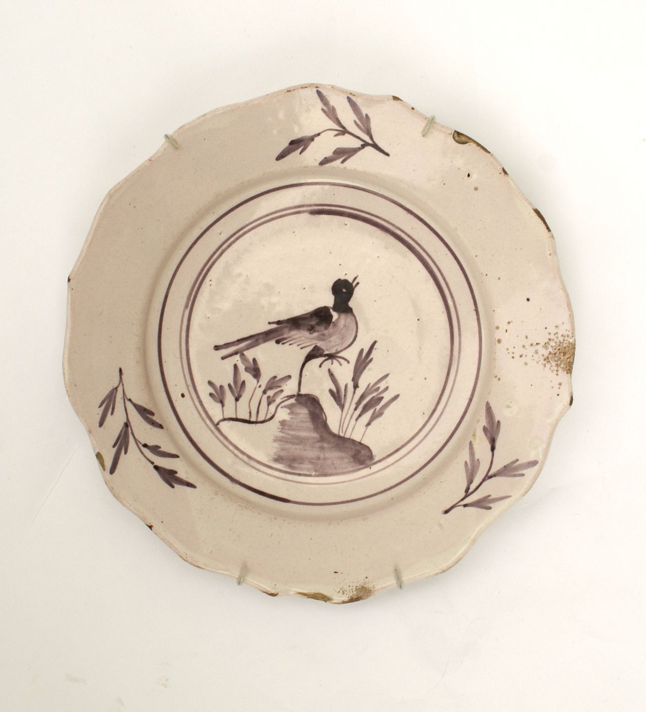 Beskrivelse: Mangandekoreret tallerken med fugl