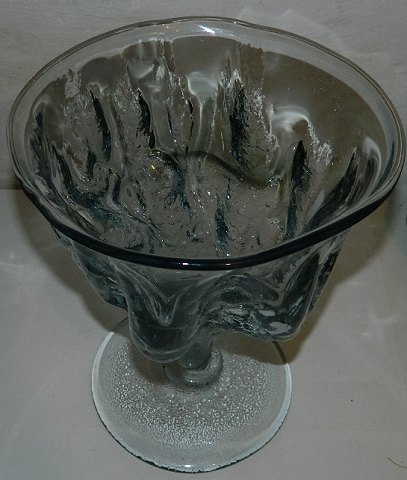Beskrivelse: Lerform unika pokal fra Holmegaard Glasværk. Designet af Per Lütken omkring 1980. Let blå/grålig glasmasse. Mindre ridse på kantens yderside. Signeret HG (for Holmegaard) PL samt modelnummer 3024. 29 cm høj - Åbningsdiameter på 21½ cm.
