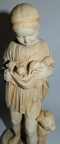 Beskrivelse: Figur i keramik af J. A. Jerichau: "Pige med killinger". Udført for P. Ipsen i slutningen af 19. århundrede. Fremstår i god stand med en par små skår. Ingen alvorlige skader eller reparationer. Fabriksmærket med P. IPSEN KJØBENHAVN samt modelnummer 703 og signeret af kunstneren. 27 cm høj. LIGNENDE KØBES