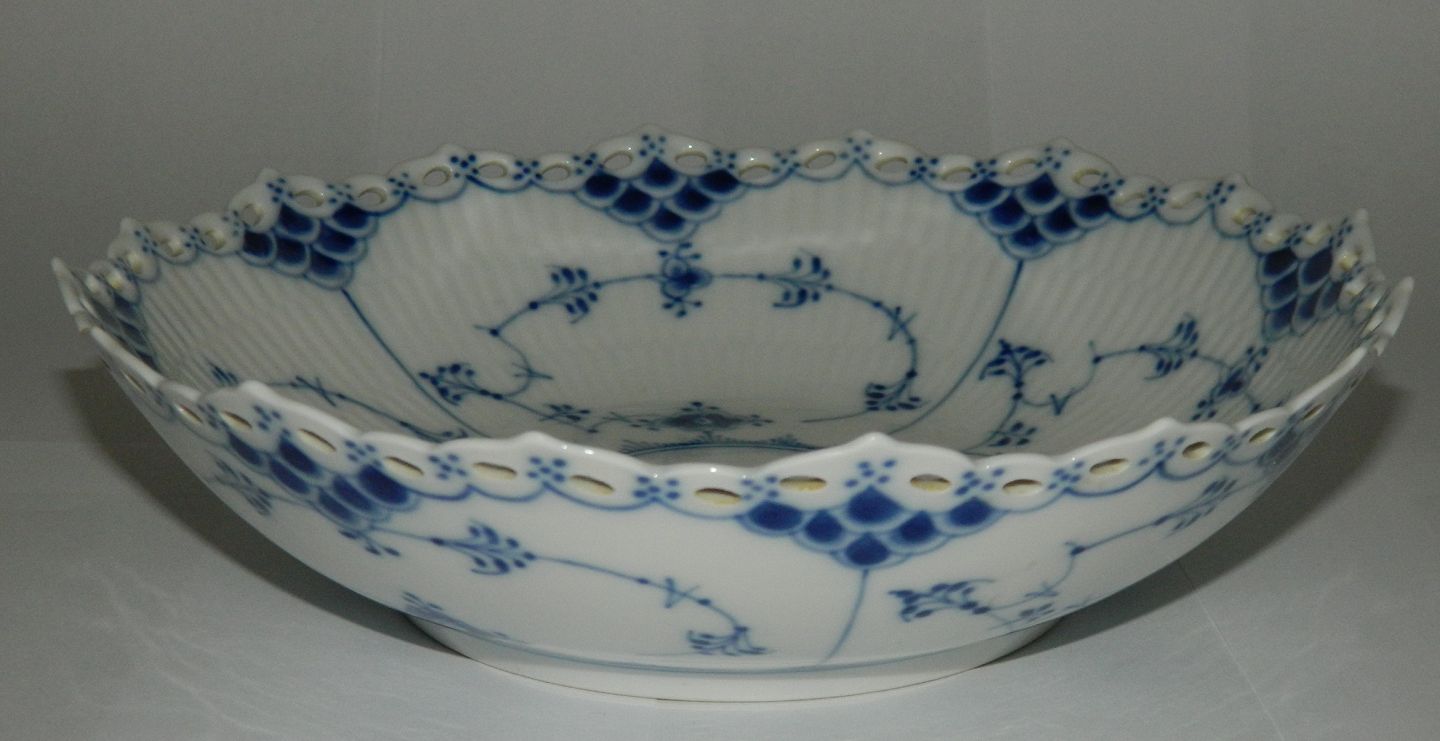 Description: Full lace bowl in porcelain from Royal Copenhagen. Model number 1/1018. No damage or repairs. Factory first production. Factory marks on the bottom. Opening diameter at 20½ cm