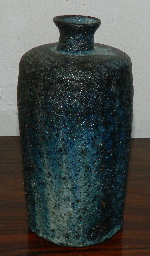 Beskrivelse: Glaseret flaskeformet vase af Gutte Eriksen(1918-2008). Fremstillet på hendes eget værksted. Fremstår i perfekt stand. Stempelsignatur på bunden. 16 cm høj.