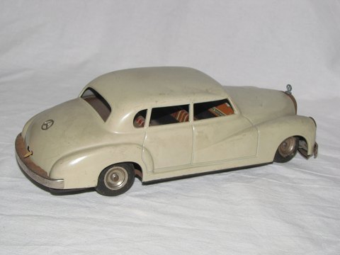 Beskrivelse: Mercedes blik bil fra Tyskland 24 x 9 cm. Pæn stand alle dele på bil er intakt, nøgle mangler. Ikke mærket