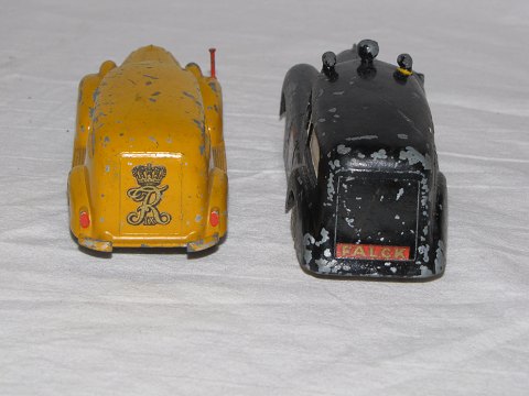 Beskrivelse: Gul postbil samt Falck sygetransport. Postbil mangler flag på stang Falck bil mangler stang og flag . Mærket Tekno Danmark. Brugt stand