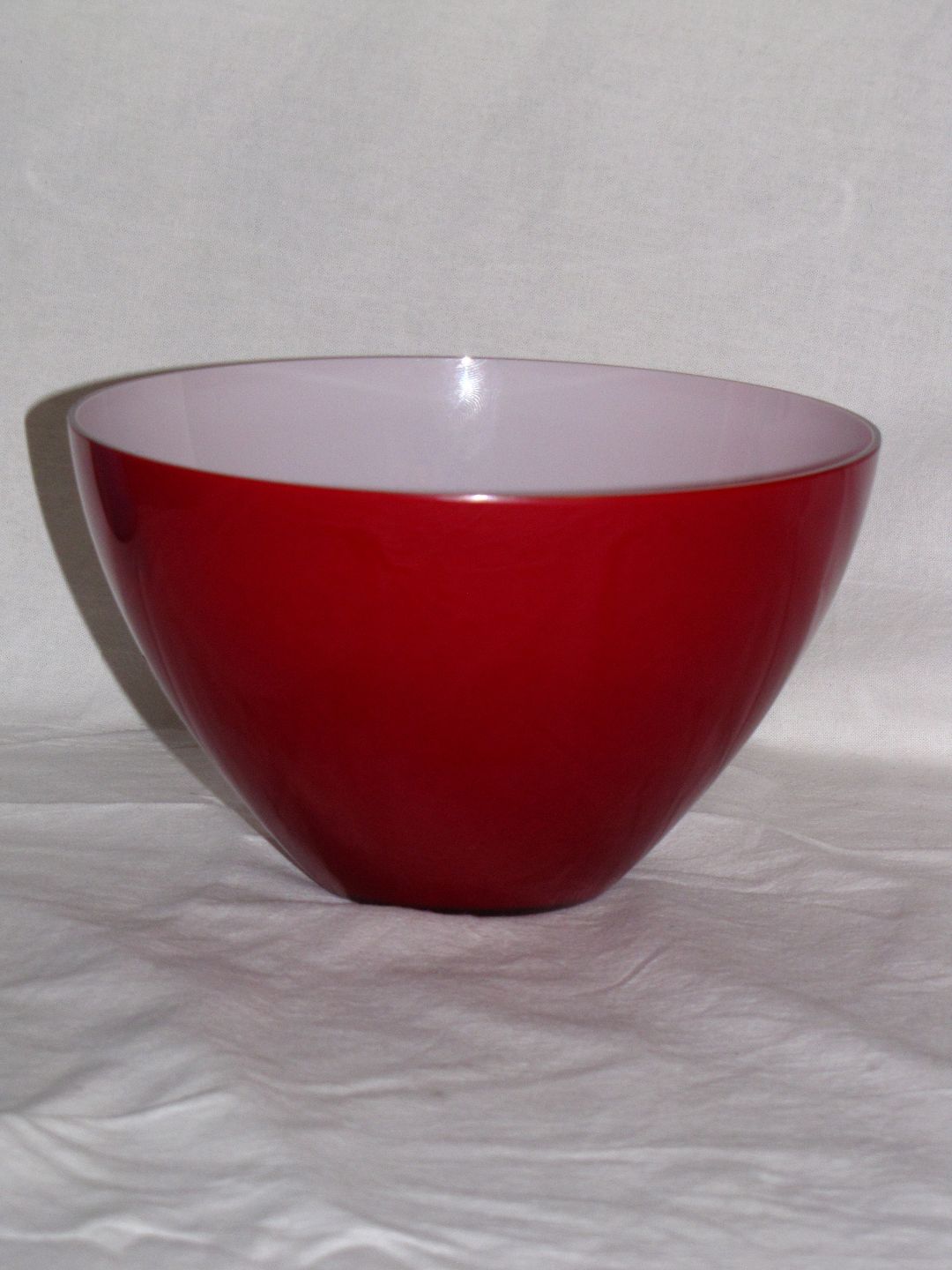 Beskrivelse: Skål i rødt & hvidt glas fra Kastrup Glasværk. Højde 7,5 cm. 13 cm. Fra 70'erne. ( mærket er fra større glas skål, samme serie )