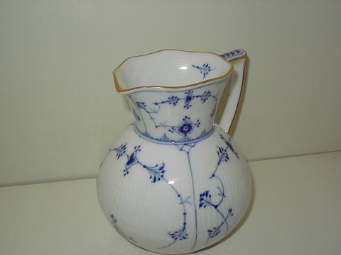Beskrivelse: Kongelig Musselmalet Riflet med guldkant, Flot Mælkekande. Dek. nr. 1/387, 1. sortering, måler 17 cm. Fra slutningen af 1800 tallet.