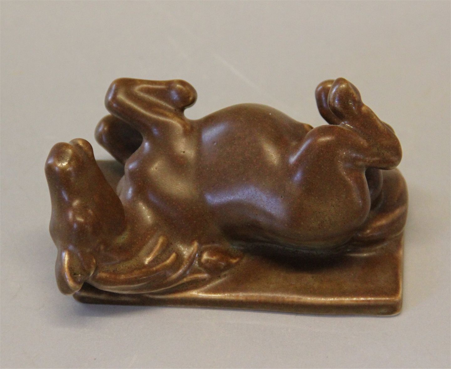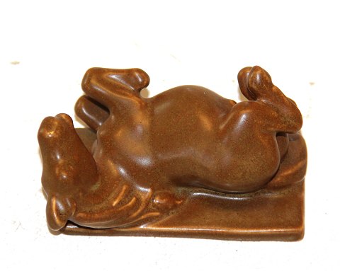 Dansk Stentøj B&G 7214 Shetland Pony liggende på ryggen K. Otto Johansen 6 x 10 cm