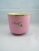 Beskrivelse: Urtepotteskjulere i en fine lyserøde nuancer med blomstermotiver. Potten øverst i foto samt urtepotten med de mørkere blomster har begge enkelte hårfine krakeleringer ved pottens øverste kant. Øverste pottes højde: 17 cm. Ø: 18 cm. Pris: 350 kr. Potte med mørkere blomster: Højde: 17 cm. Ø: 18 cm. Pris: 350 kr. Potte med lyse blomster: Højde: 17 cm. Ø: 18,5 cm. Pris: 550 kr. Varenr.: 206599