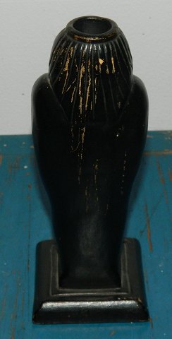 Beskrivelse: Sarkofag lyseholder i sortbemalet terracotta fra Sonne fabrikken på Bornholm. Fremstillet omkring 1900. Fremstår i god stand uden skader eller reparationer. Signeret Sonne samt Cordsen.