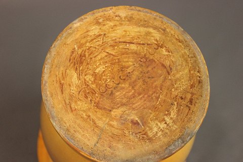 Beskrivelse: Stor flot gul gulvvase af Herman A. Kähler.