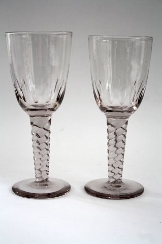 Beskrivelse: Sjældne gamle Twist porterglas med olivslibning og opdrevet kumme. Højde 22 cm. Diameter 9 cm.