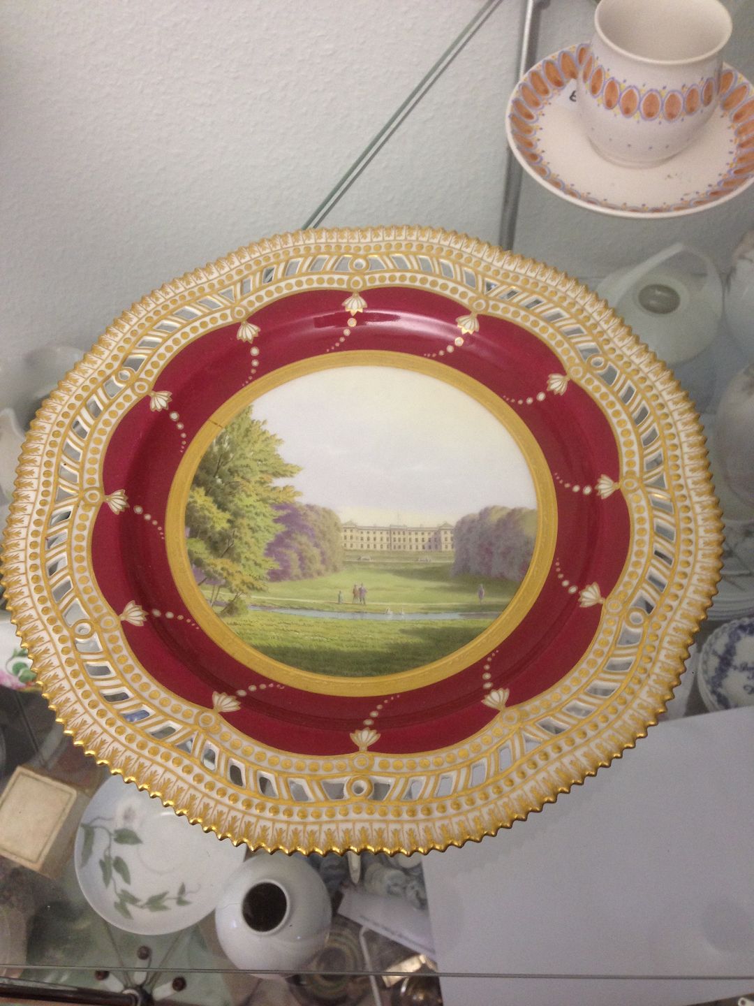 Royal Copenhagen Flora Danica Typografisk tallerken af Frederiksberg Slot malet af Emil Ort
