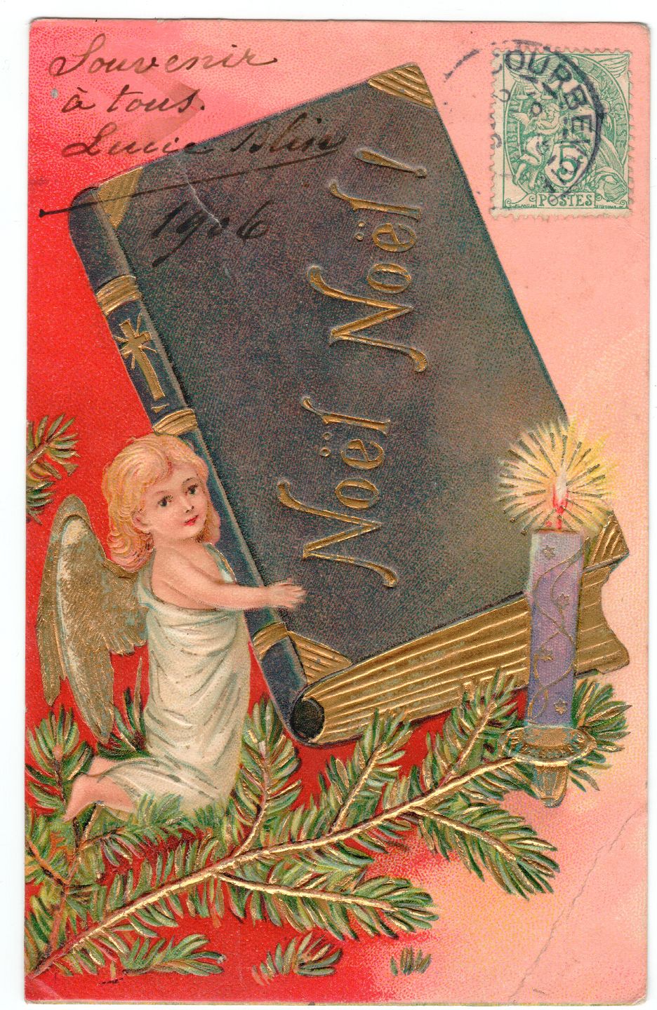 Beskrivelse: Flot Fransk julkort med engel fra julen 1906. Mål ca. 14 x 9 cm.