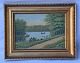 Beskrivelse: Landskabsmotiv. Maleri på plade. Signeret. Lille skade på rammen. Pæn stand.