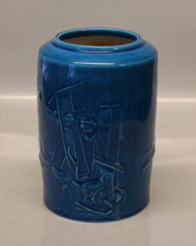 B&G 19-191 Turkis glaseret vase med høns 15.5 cm Mogens Bøggild Signeret MB