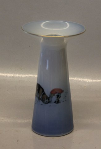 3502-503 Lysestage 15 cm Nisse og blodhund Bing & Grøndahl Harlad Wiberg Julestel med nisser, Royal Copenhagen I fin og hel stand. "Tomten",