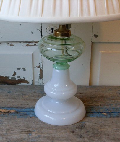 1800tals opaline lampe med oliebeholder i æble grønt glas