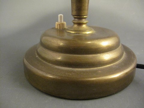 Beskrivelse: Art deco bordlampe i messing. 45 cm høj, brugs spor men ingen skader. den virker og har fået helt ny stof ledning. fra 1930'er ca