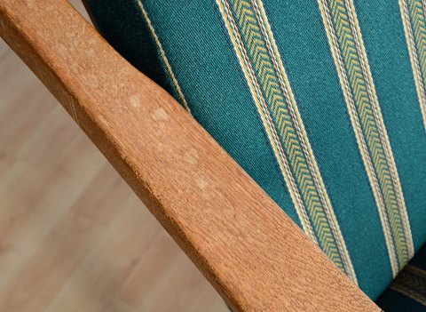 Beskrivelse: Tre styk lænestole med stofbeklædte hynder designet af H. Brockmann-Petersen. Intakte. Enkelte brugsspor på armlæn og sæder.