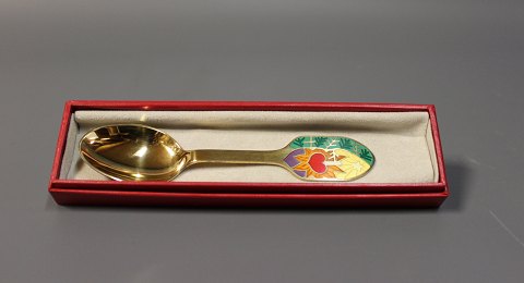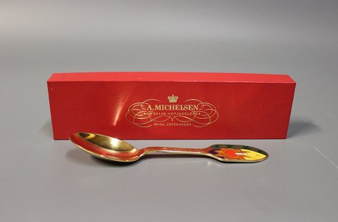 Description: Christmas spoon by A. Michelsen from 2001, gilded sterling silver 925 s. The spoon is with the motif "The Heart" and designed by Lise Malinovsky.