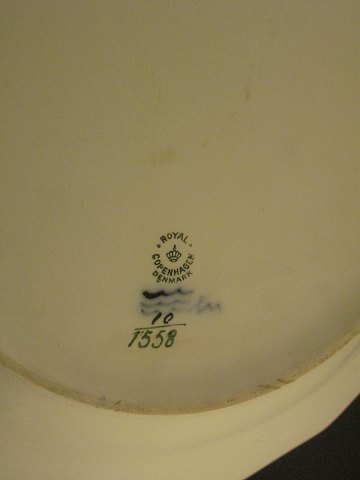 Beskrivelse: Royal Copenhagen, blå blomst Svejfet ovalt fad 44 cm nr 1558. 1.sort. nogle få brugs spor. ingen skader