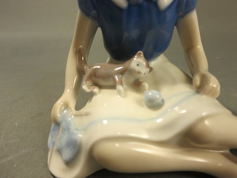 Bing & Grøndahl figur, pige med kat, nr. 2329